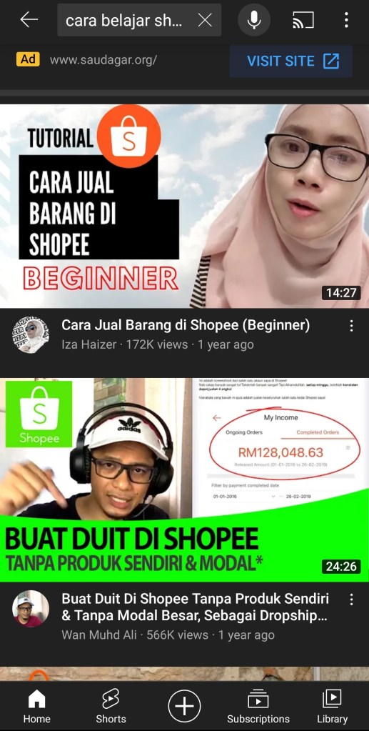 YouTube adalah satu saluran yang boleh anda mendapatkan ilmu-ilmu berkaitan Shopee secara percuma. Banyak video-video tutorial yang dikongsi dan anda boleh ikutinya dengan mudah.