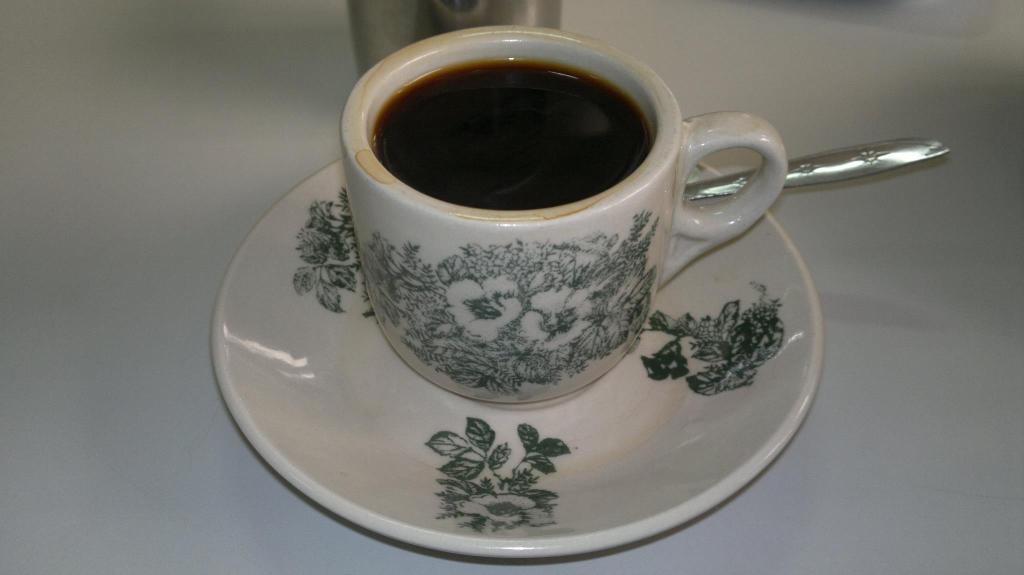 Melihat saja cawan kopi bercorak berwarna hijau dan dilapik piring dari seramik itu membuatkan hati saya ingin segera menghirup kepekatan cecair bewarna hitam dan berbuih kecil itu. Arghhh sangat nostalgia.