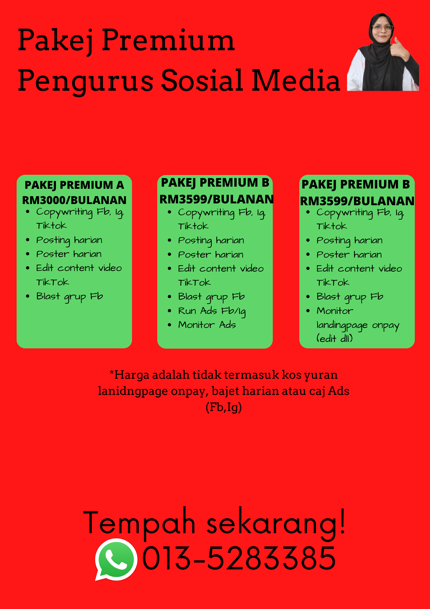 Selain itu ada juga pemilik bisnes yang mahukan saya sebagai seorang content writer Malaysia untuk menguruskan sepenuhnya akaun media sosial mereka seperti Facebook, Instagram dan TikTok. Sebagai seorang pengurus media sosial saya perlu menyediakan copywriting, poster, edit video untuk reel Ig, TikTok, story Facebook dan posting harian.