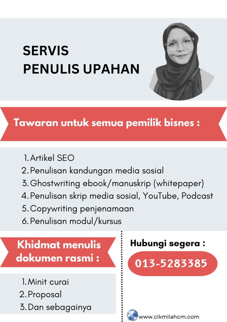 Atau masyarakat masih menyukai penulisan yang dihasilkan melalui minda sedar, emosi dan hati penulis itu sendiri dalam menyampaikan maklumat atau copywriting serta konten penulisan kepada audien.
